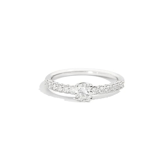 Solitaire ring in white gold and diamonds (0.56ct), with central diamond (0.28ct) and diamonds on the shank.