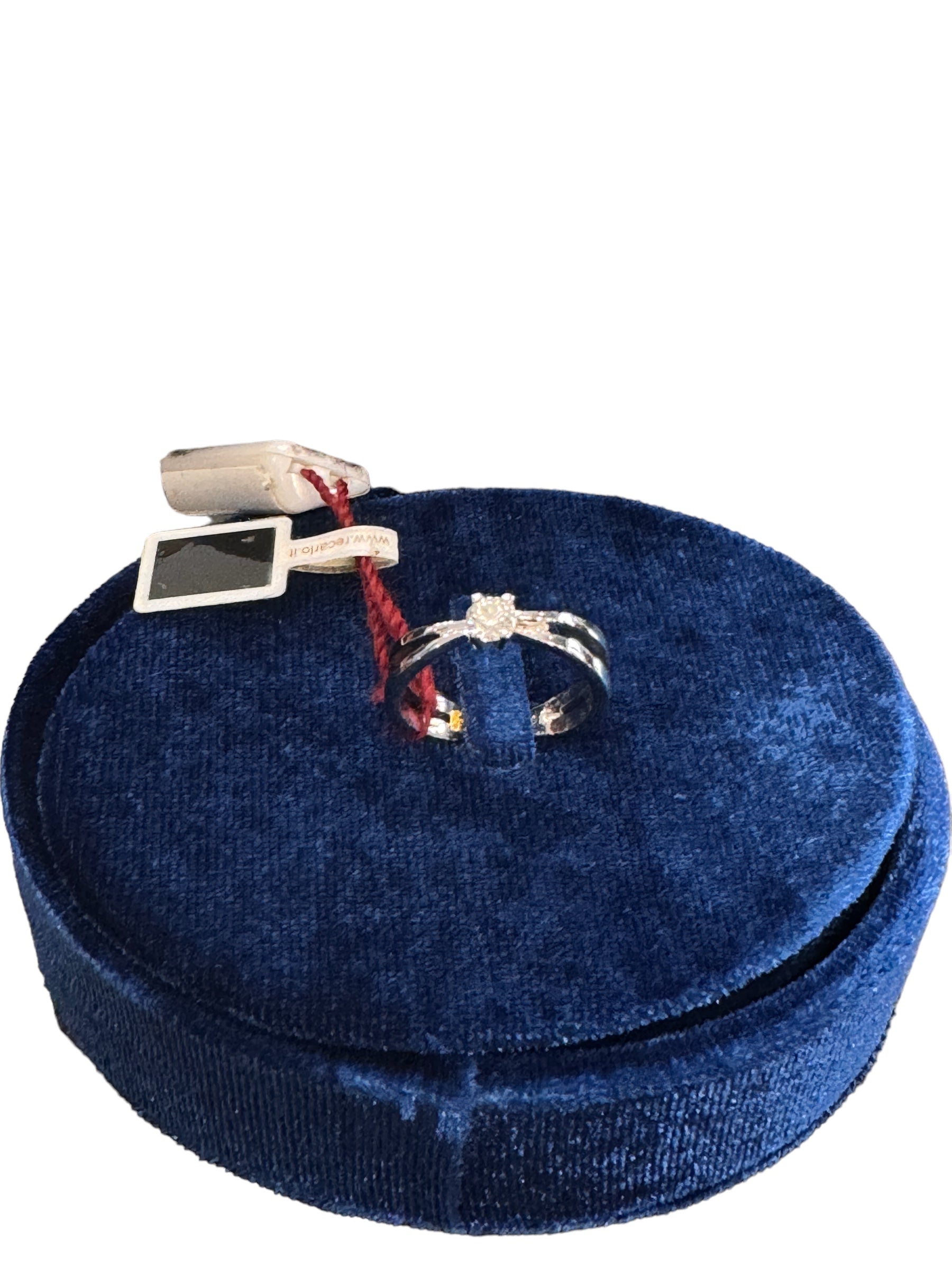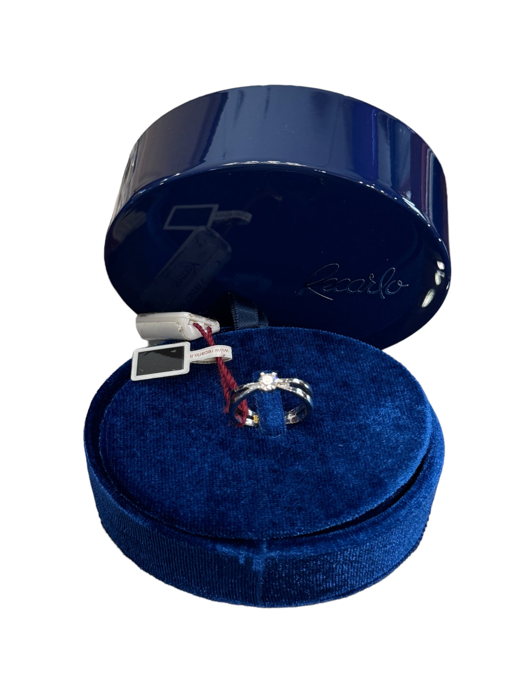 Anello Solitario con doppio gambo in oro bianco e diamanti