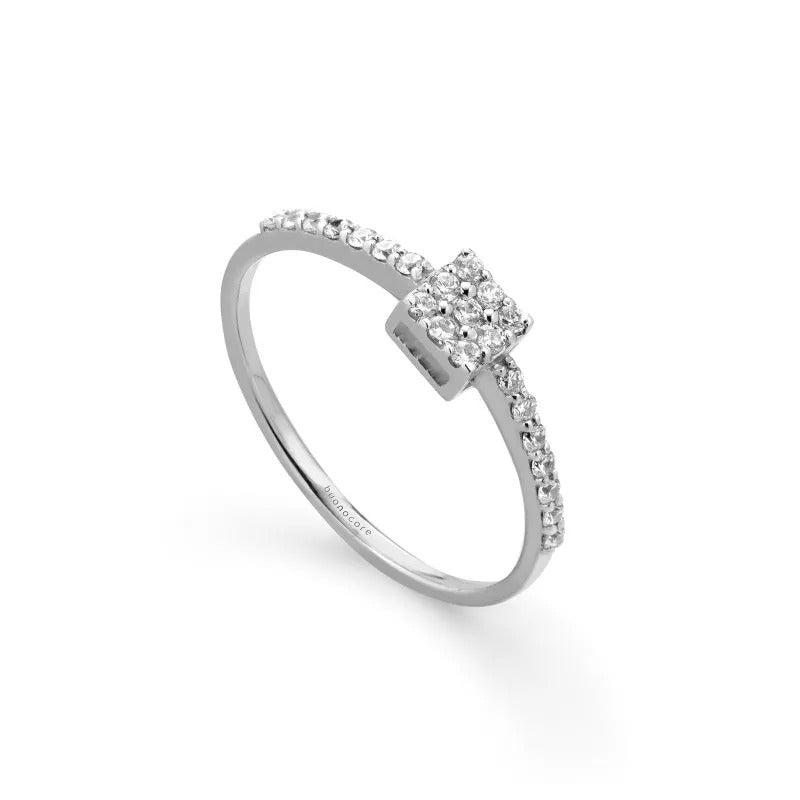 Anello oro bianco 18kt “toppa quadrata e gambo incastonato” & diamanti bianchi