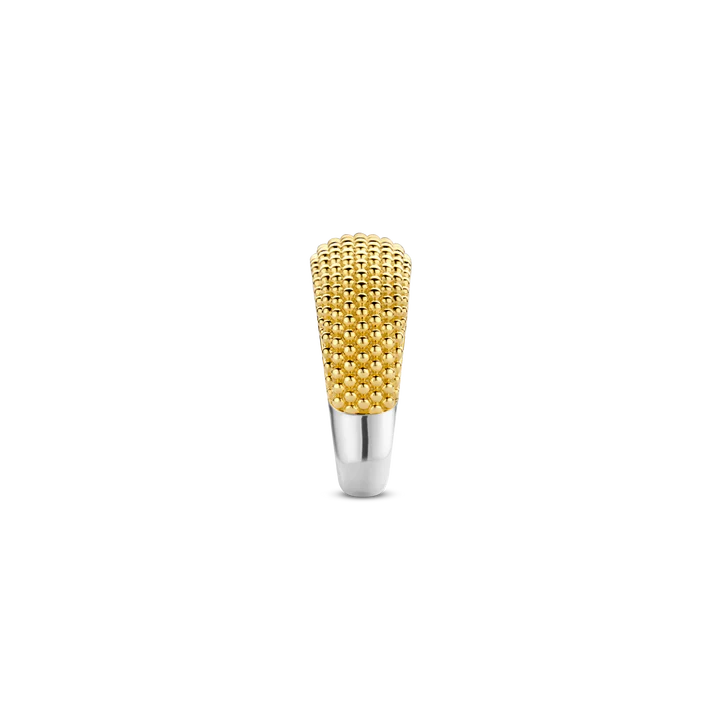 Questo anello d'argento placcato oro a cupola TI SENTO 12277SY colpisce per la struttura a bollicine. È realizzato in argento sterling 925 e placcato in oro. Un gioiello originale, per mani da favola.